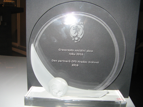 Hned pět ocenění převzali zástupci fotbalu z Královéhradeckého kraje. „Je to pro nás velký úspěch, velmi dobrá prezentace našeho regionu,” řekl Václav Andrejs, předseda krajského svazu.
