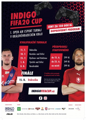 V sobotu 1.8.2020 vypukne v Týništi nad Orlicí již čtvrtý ze série turnajů IndiGO FIFA20 Cup, první esportový turnaj pod širým nebem v Královéhradeckém kraji. Hráči se měli možnost několik týdnů registrovat v síti Ticketportal a o tomto víkendu změří již počtvrté své síly ve fotbalové videohře FIFA20 na platformě PlayStation4. „Je to čtvrtý z pěti kvalifikačních turnajů. Z každého z nich postoupí nejlepších šest hráčů do velkého finále, které se uskuteční v polovině srpna znovu v Dobrušce,“ říká za organizátory Honza Dušek. Celkem je na programu pět kvalifikačních turnajů.