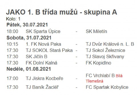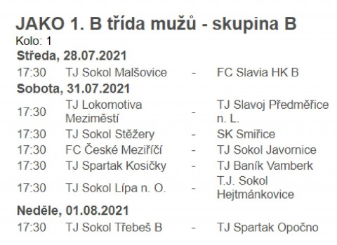 "JAKO B třídy dospělých", a to skupina A a B. Některé týmy se zde vyměnili z důvodu administrativního postupu díky odstoupení FC Olympia HK, a tak bude zajímavé sledovat, kdo se zařadí již od samotného začátku mezi favority v obou skupinách.