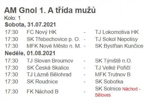 Týništěm nad Orlicí. V prvním kole se pak odehraje několik ,,derby" utkání, a to například mezi