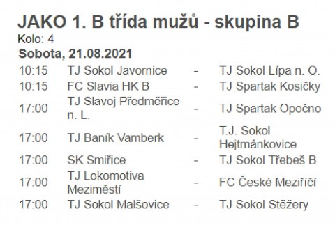 Krajské B třídy rovněž odehrají své další kolo, zde je nabídka zápasů těchto soutěží