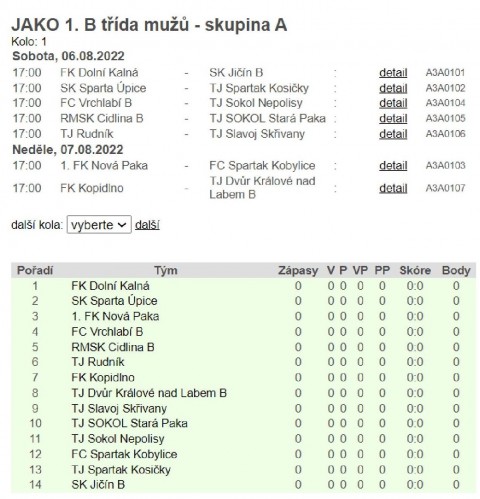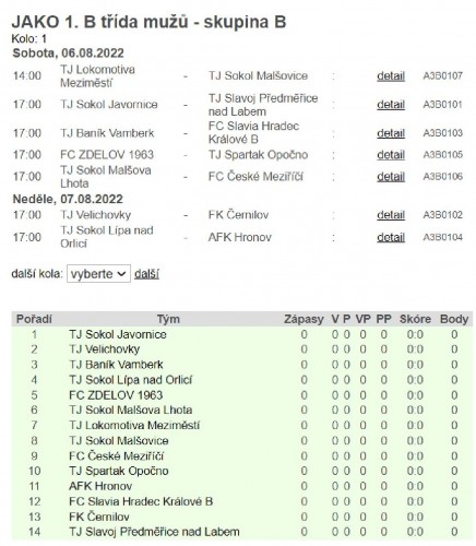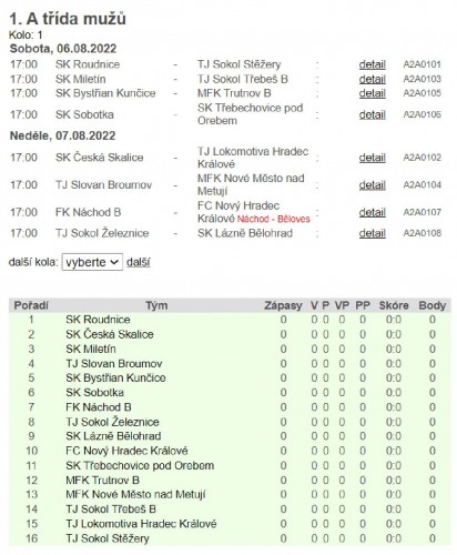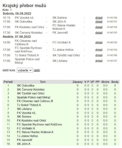 FK Jaroměř. Domácí mají před zápasem velkou slávu, kdy otevírají nově zrekonstruovaný stadion a očekávat se tak dá návštěva atakující přes 1.000lidí! Asi největší favorit soutěže, tým